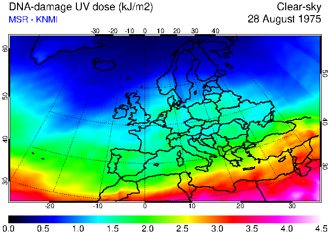 DNA-damage UV dose of 28 August 1975