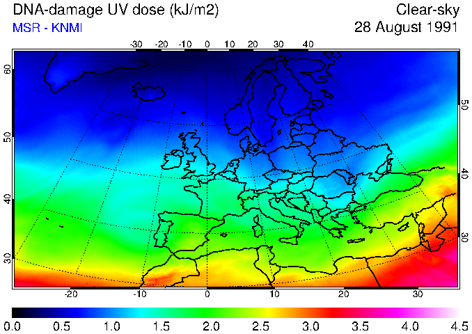 DNA-damage UV dose of 28 August 1991