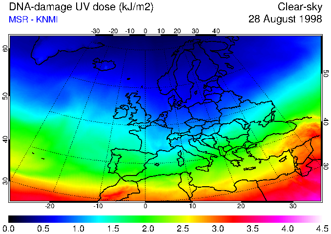DNA-damage UV dose of 28 August 1998