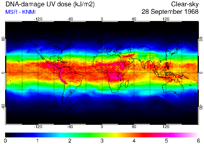Daily UV dose:   erythemal  |  vitamin-D  |  DNA-damage