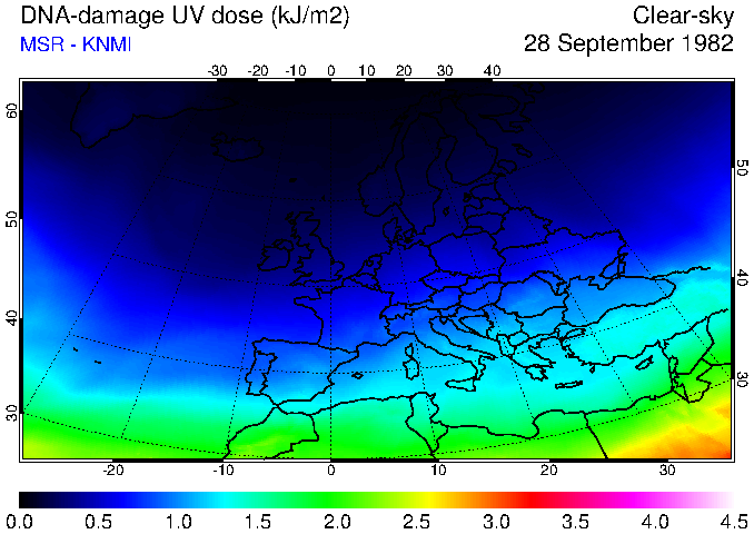 DNA-damage UV dose of 28 September 1982