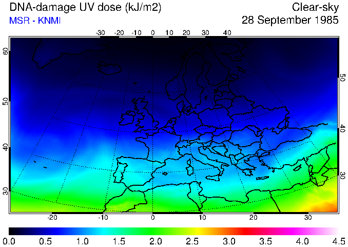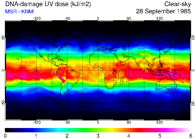 DNA-damage UV dose of 28 September 1985