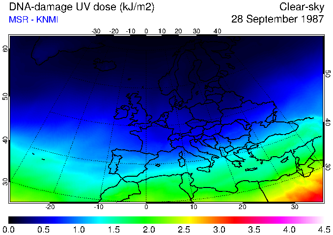 DNA-damage UV dose of 28 September 1987