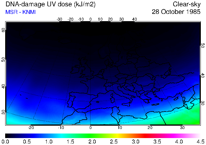 DNA-damage UV dose of 28 October 1985