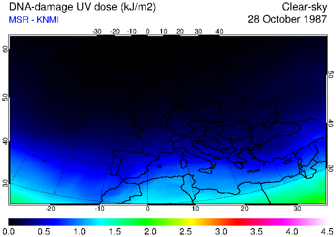 DNA-damage UV dose of 28 October 1987