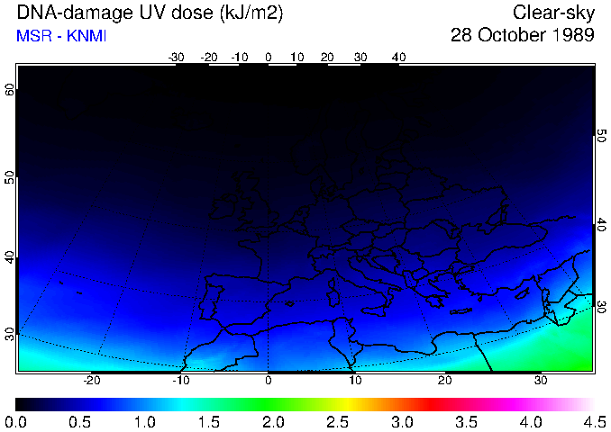 DNA-damage UV dose of 28 October 1989