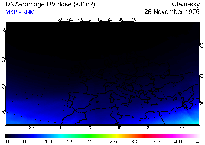 DNA-damage UV dose of 28 November 1976