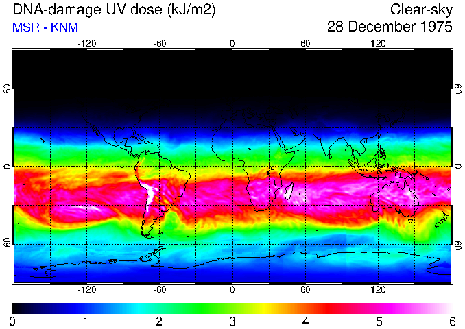 DNA-damage UV dose of 28 December 1975