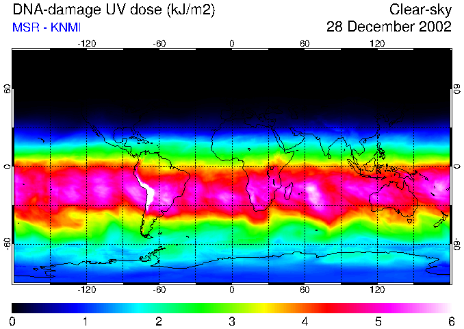 Daily UV dose:   erythemal  |  vitamin-D  |  DNA-damage