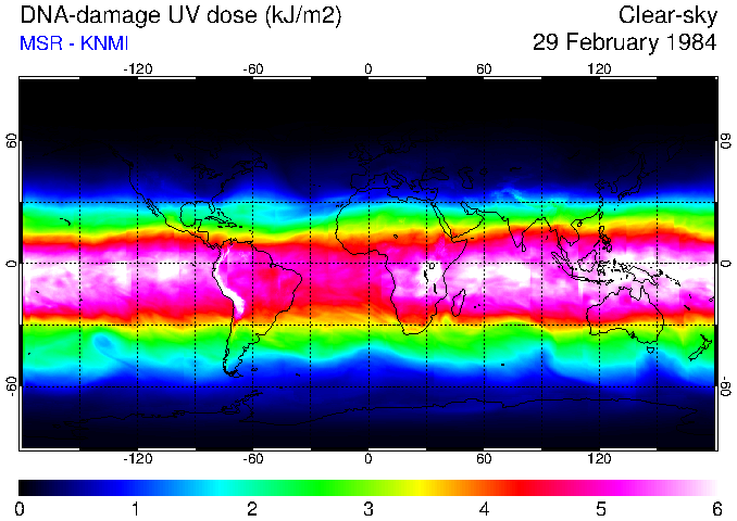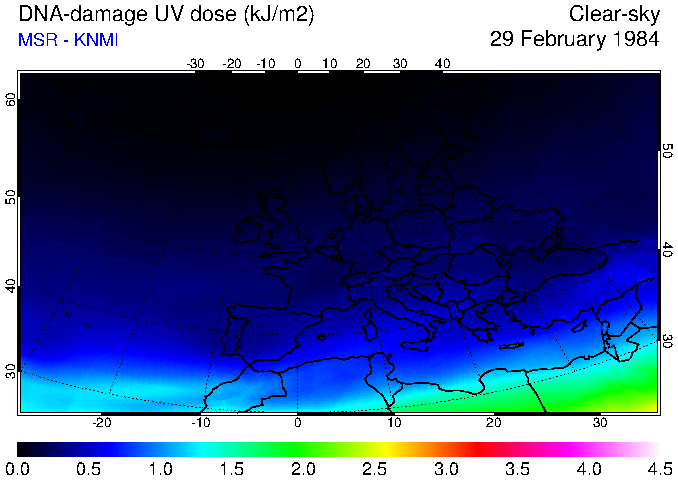 DNA-damage UV dose of 29 February 1984