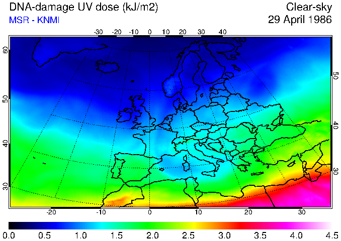 DNA-damage UV dose of 29 April 1986