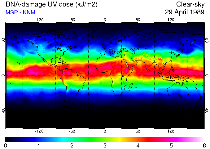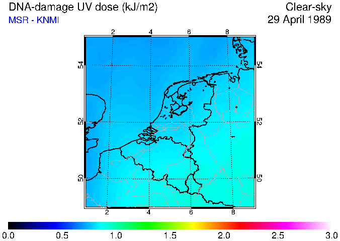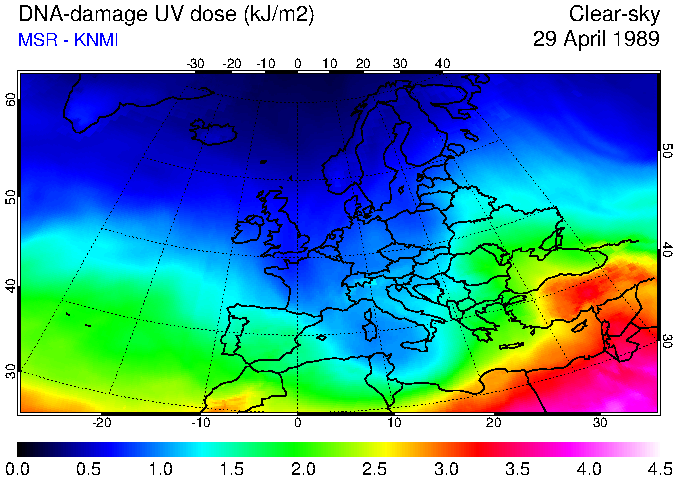 DNA-damage UV dose of 29 April 1989