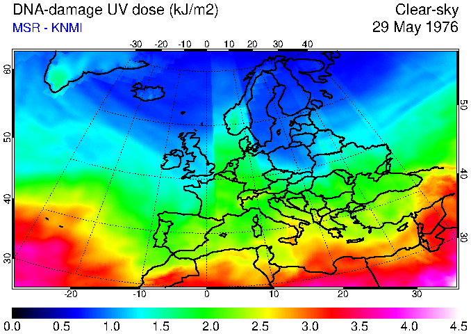 DNA-damage UV dose of 29 May 1976