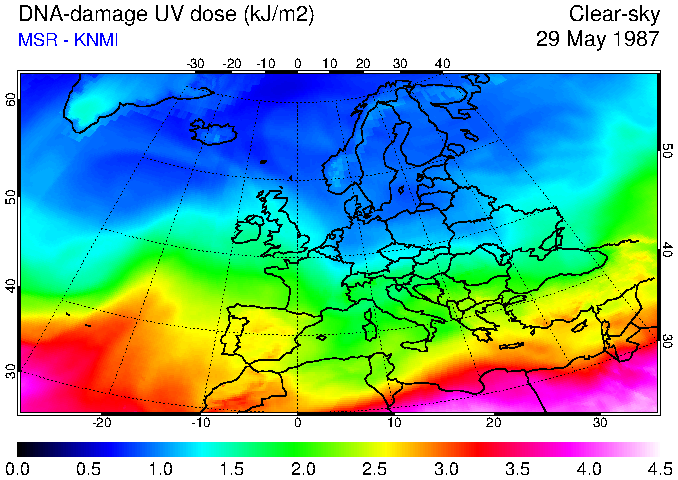DNA-damage UV dose of 29 May 1987