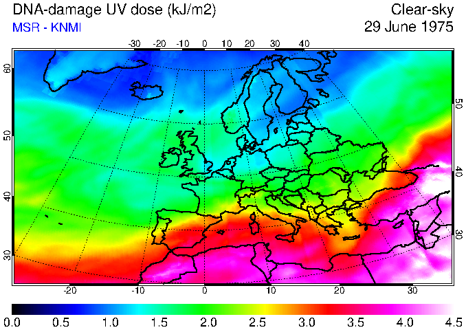 DNA-damage UV dose of 29 June 1975