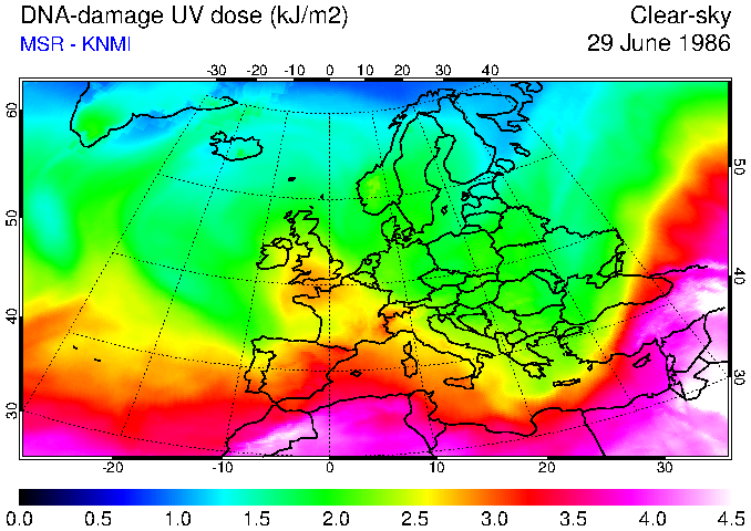 DNA-damage UV dose of 29 June 1986
