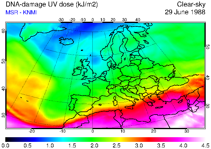 DNA-damage UV dose of 29 June 1988