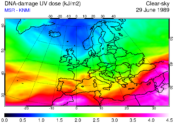 DNA-damage UV dose of 29 June 1989
