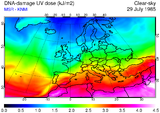 DNA-damage UV dose of 29 July 1985