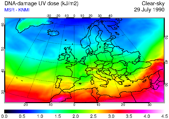 DNA-damage UV dose of 29 July 1990