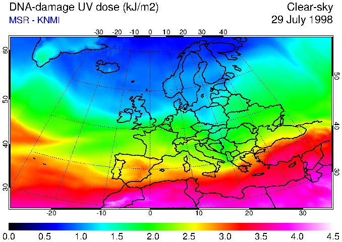 DNA-damage UV dose of 29 July 1998
