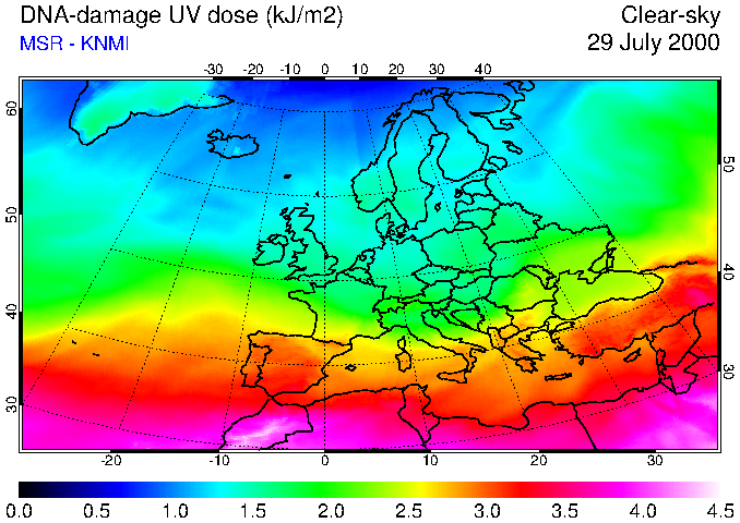 DNA-damage UV dose of 29 July 2000