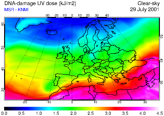 DNA-damage UV dose of 29 July 2001