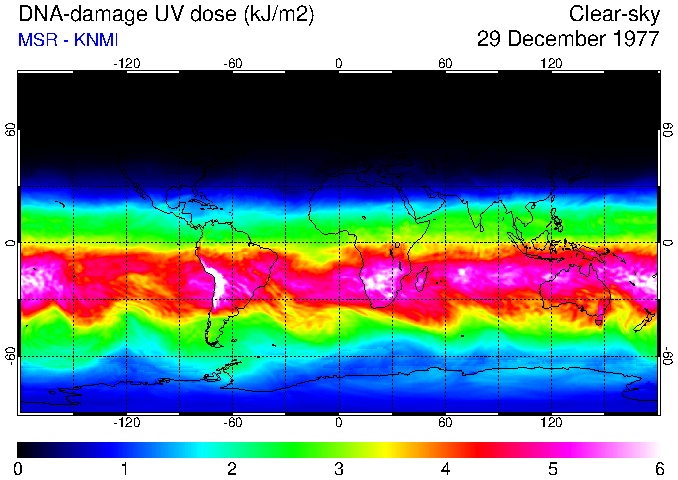 Daily UV dose:   erythemal  |  vitamin-D  |  DNA-damage