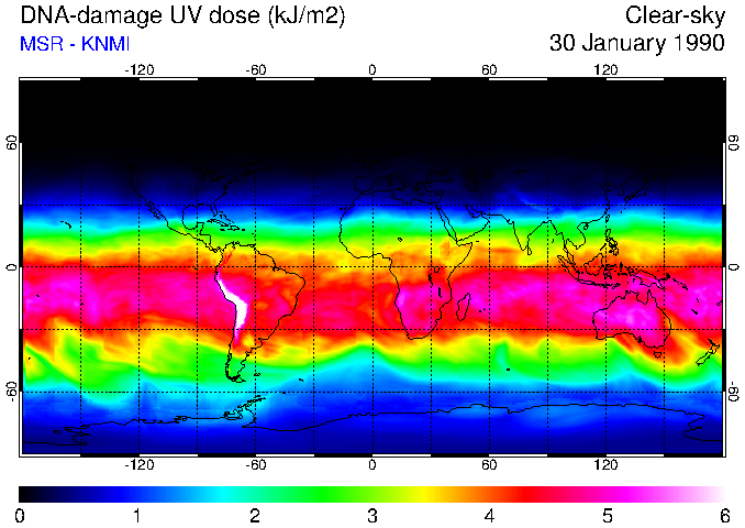 DNA-damage UV dose of 30 January 1990