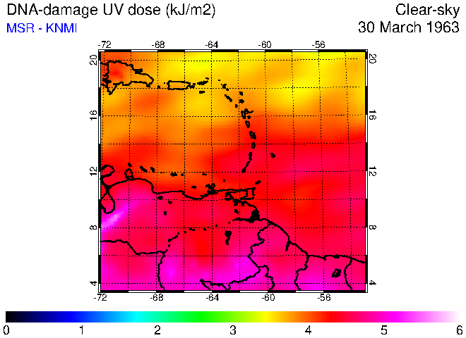 Clear-sky UV index:   erythemal