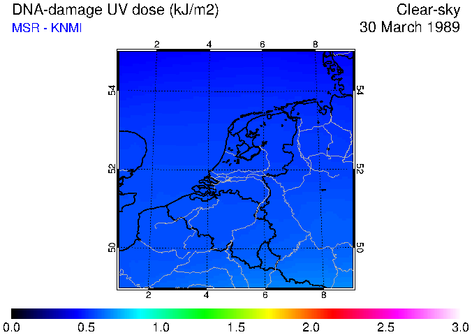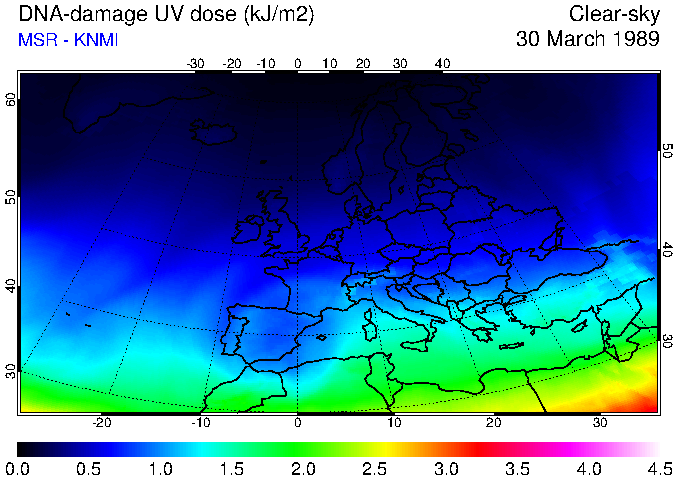 DNA-damage UV dose of 30 March 1989