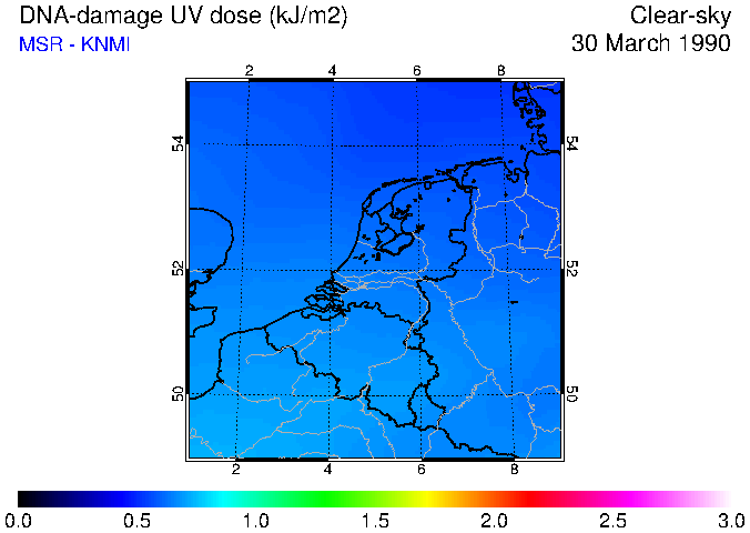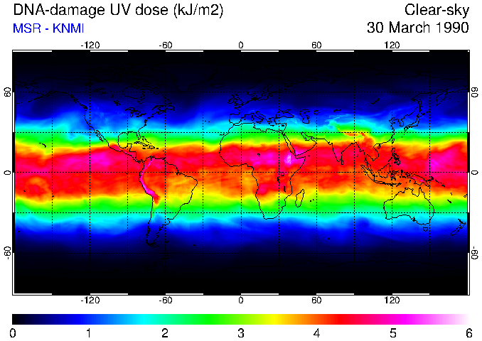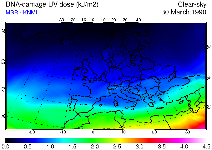 DNA-damage UV dose of 30 March 1990