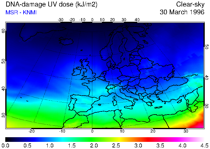 DNA-damage UV dose of 30 March 1996