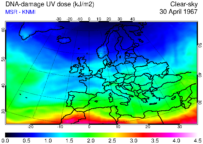 DNA-damage UV dose of 30 April 1967