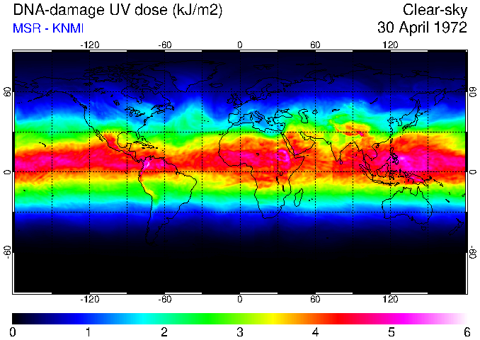 Daily UV dose:   erythemal  |  vitamin-D  |  DNA-damage