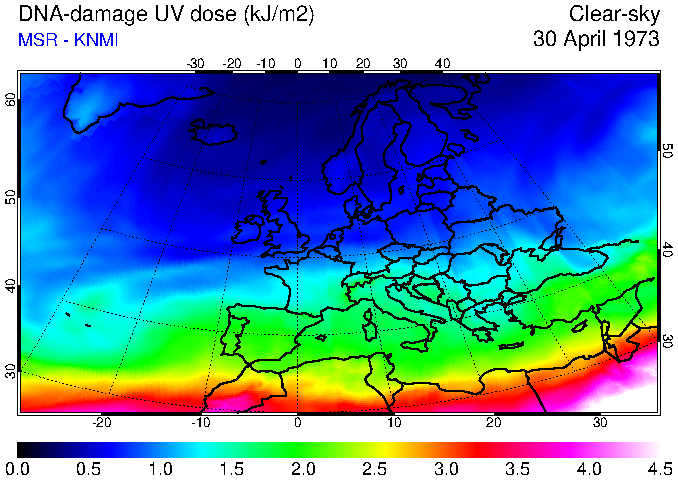 DNA-damage UV dose of 30 April 1973