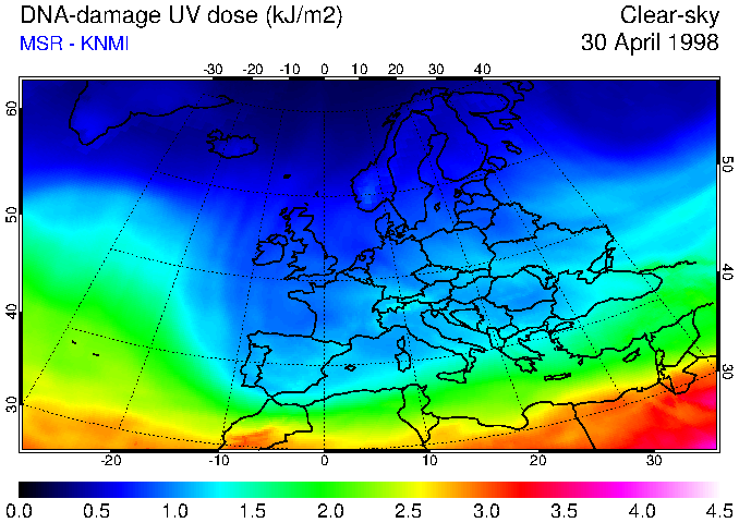 DNA-damage UV dose of 30 April 1998