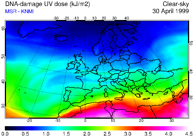 DNA-damage UV dose of 30 April 1999