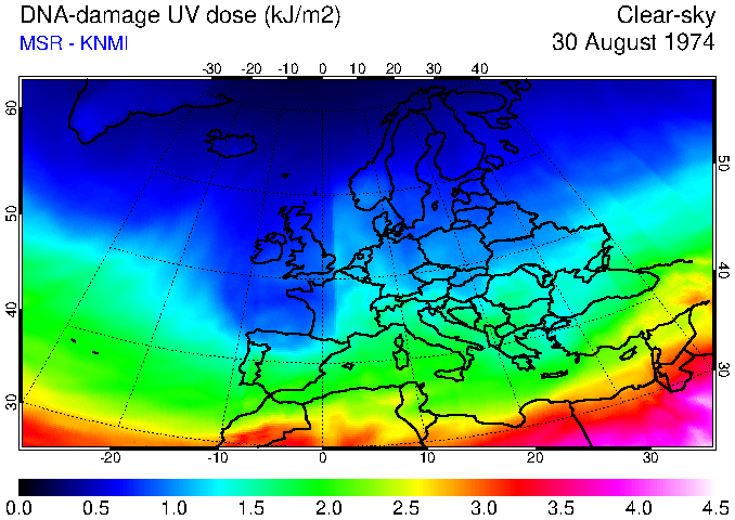 DNA-damage UV dose of 30 August 1974