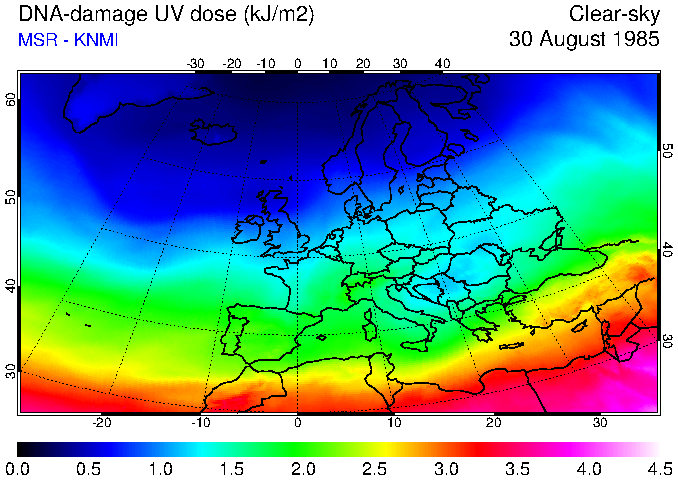 DNA-damage UV dose of 30 August 1985