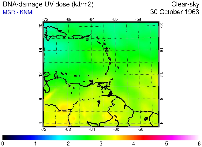 Clear-sky UV index:   erythemal