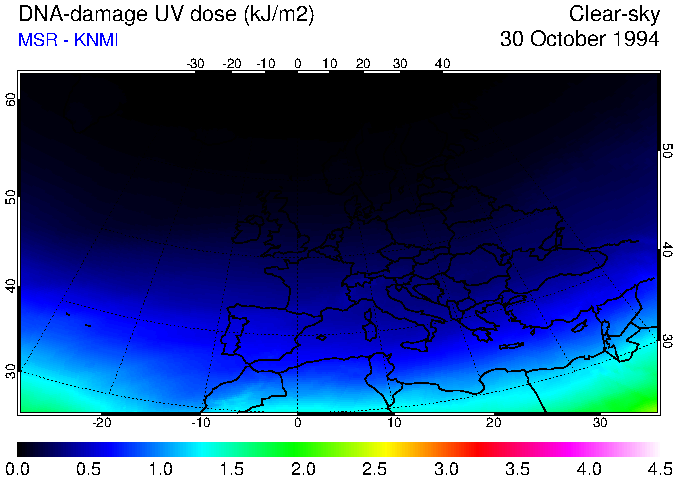 DNA-damage UV dose of 30 October 1994