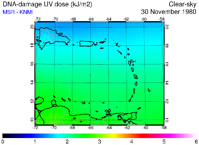 Clear-sky UV index:   erythemal