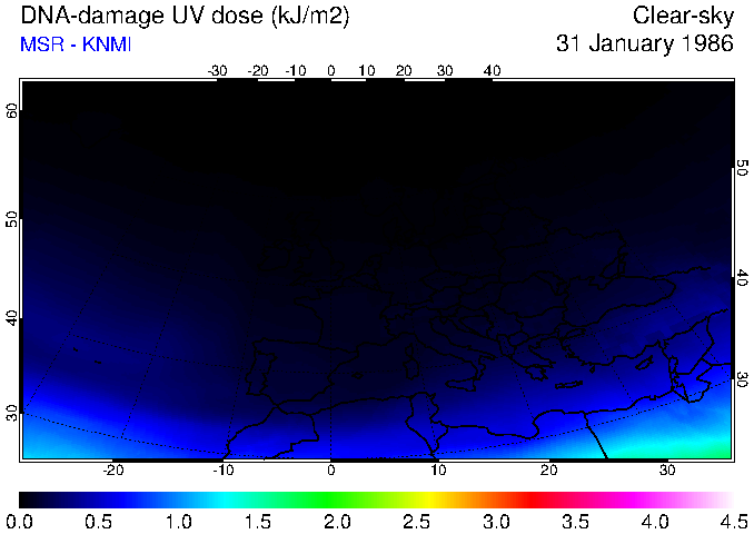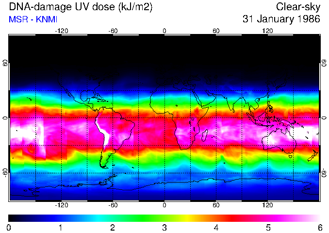 DNA-damage UV dose of 31 January 1986