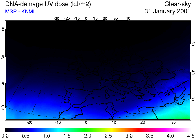 DNA-damage UV dose of 31 January 2001