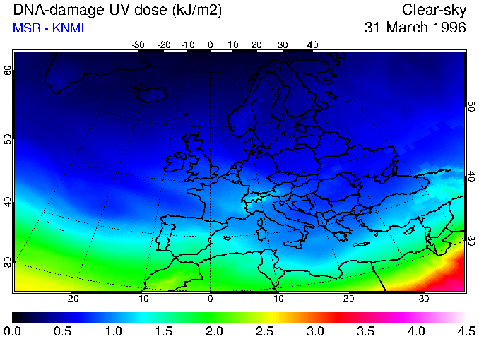 DNA-damage UV dose of 31 March 1996