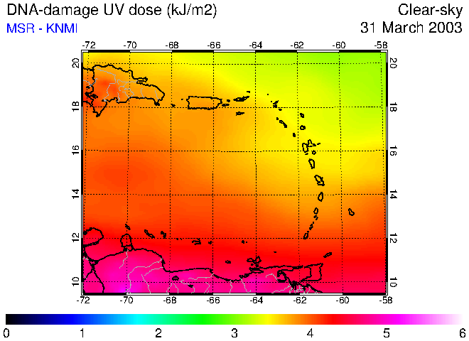 Clear-sky UV index:   erythemal