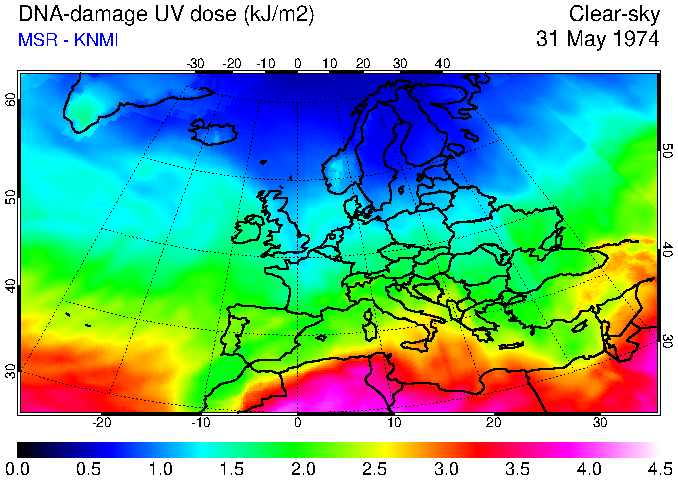 DNA-damage UV dose of 31 May 1974