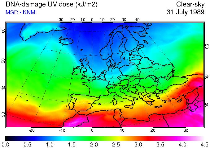 DNA-damage UV dose of 31 July 1989
