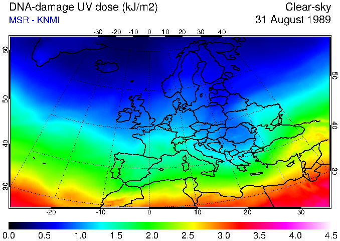 DNA-damage UV dose of 31 August 1989